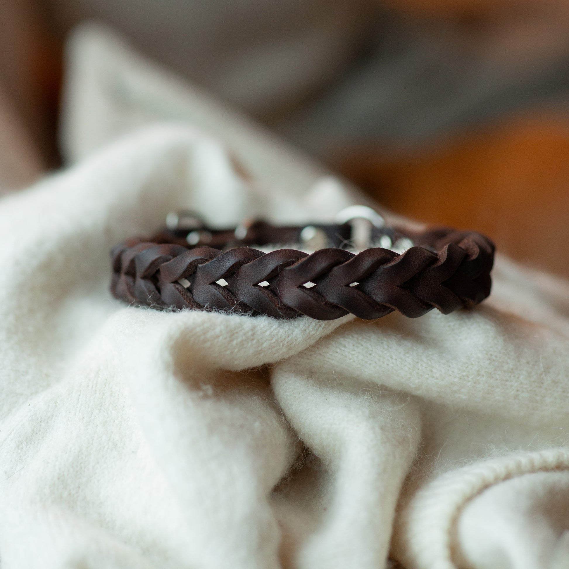Halvstryp gjort av det gamla lädret i färgen brun med metall i silver. Något nättare modell med en bredd om 15mm. Skapat i den gamla designen med dubbla nitar. Inget som påverkar varken funktion eller hållbarhet.