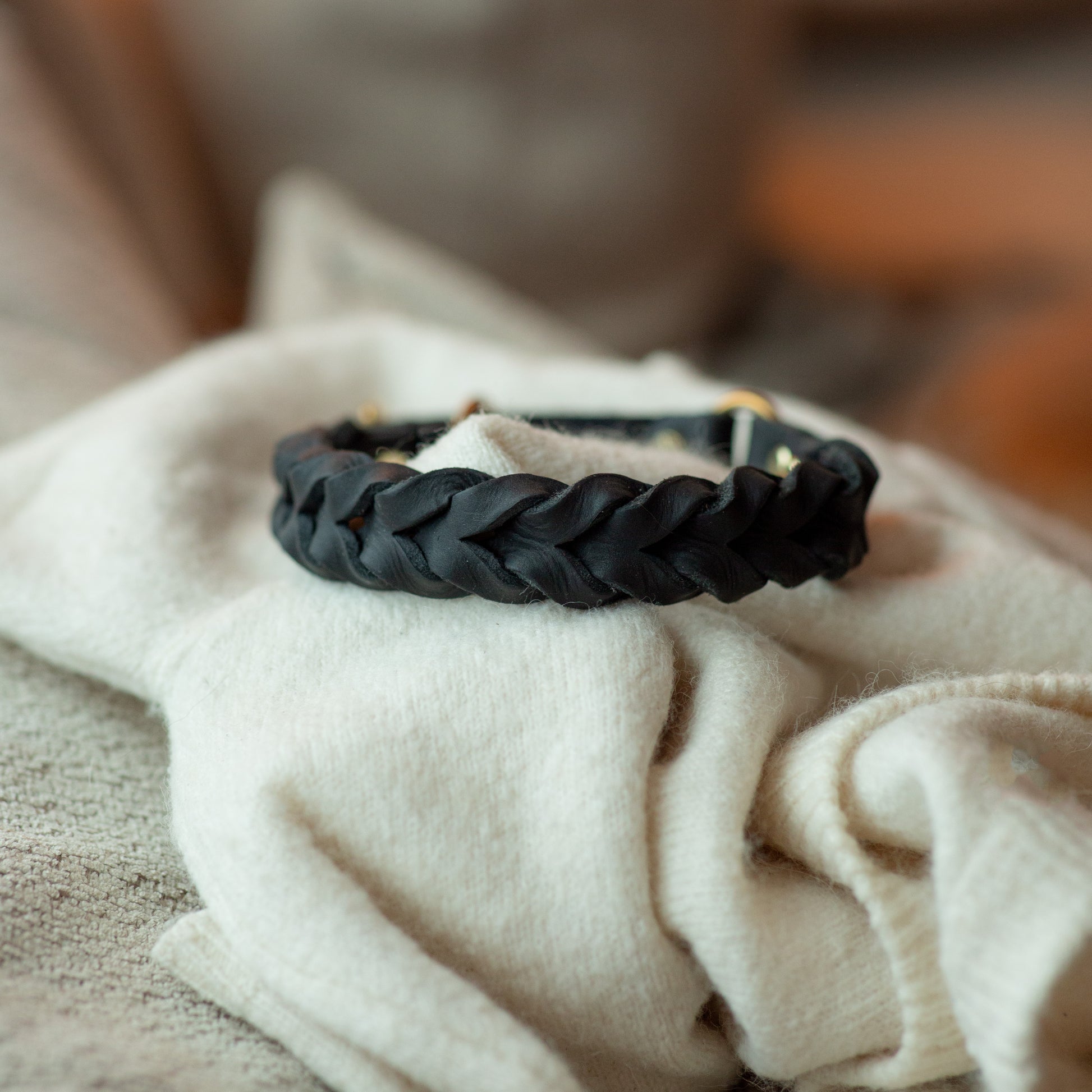 Halvstryp gjort av det gamla lädret i färgen svart med metall i mässing. Har den gamla designen med dubbla nitar. Inget som påverkar varken funktion eller hållbarheten.