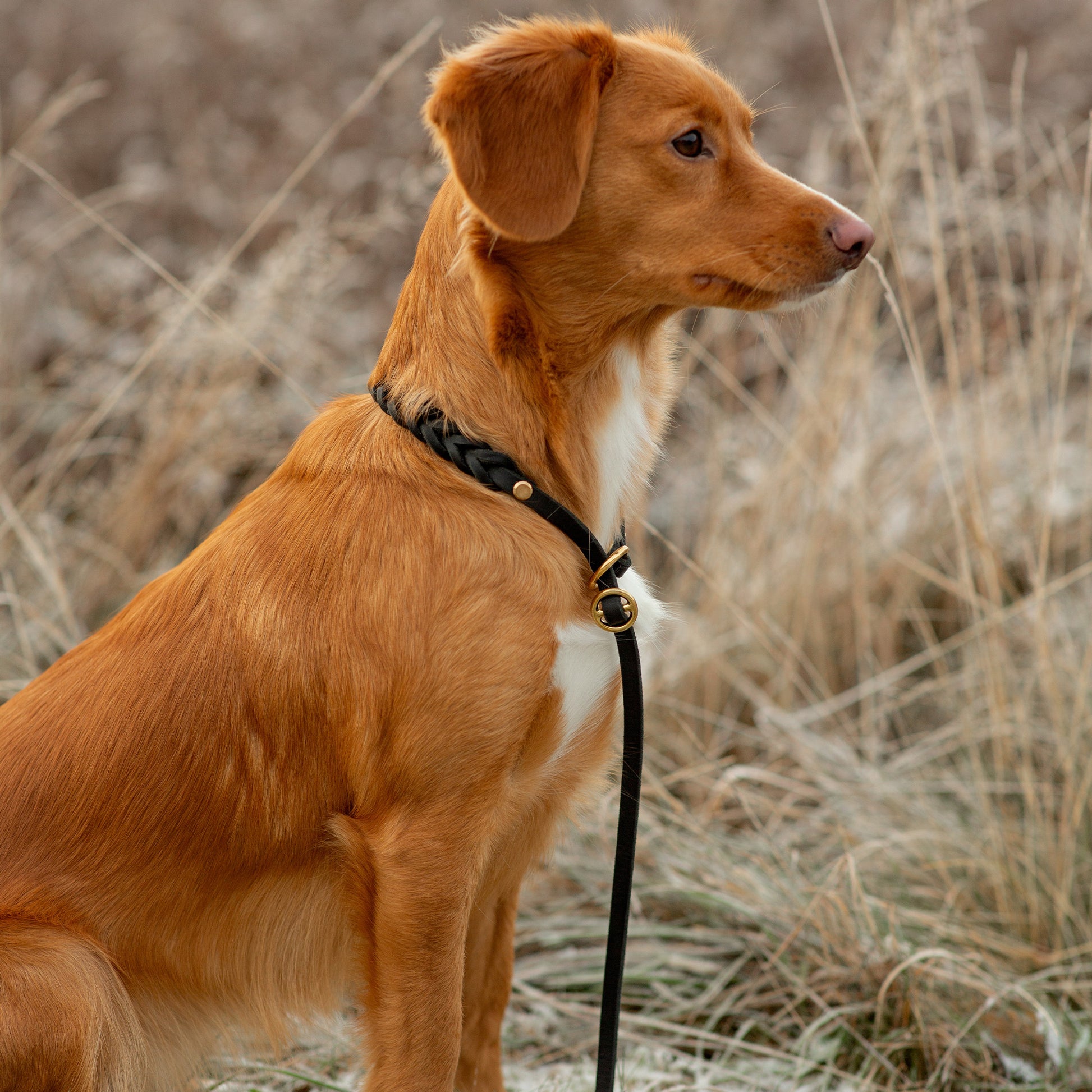 Detta retrieverkoppel är designat för att vara både praktiskt och stilfullt. Tillverkat för hand av mjukt fettat läder som klarar av alla äventyr och aktiviteter. Den flätade halsdelen tillsammans med gulddetaljerna ger en exklusiv känsla samtidigt som vi inte tummat på varken kvalitet eller funktion.